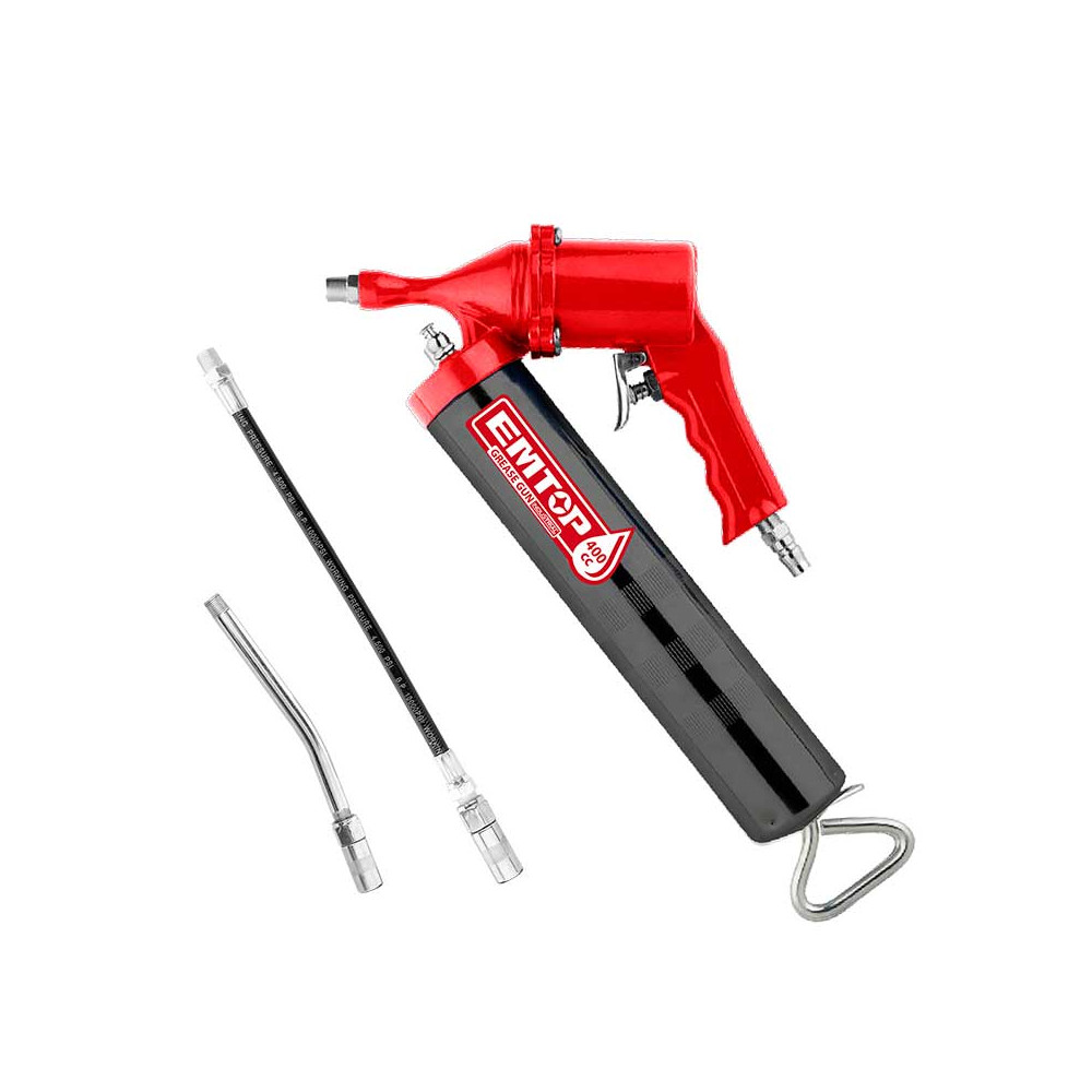 Acerca de este producto: - Pistola engrasadora neumática EMTOP con capacidad de 14 oz (400 cc), diseñada para un engrase rápido y eficiente.