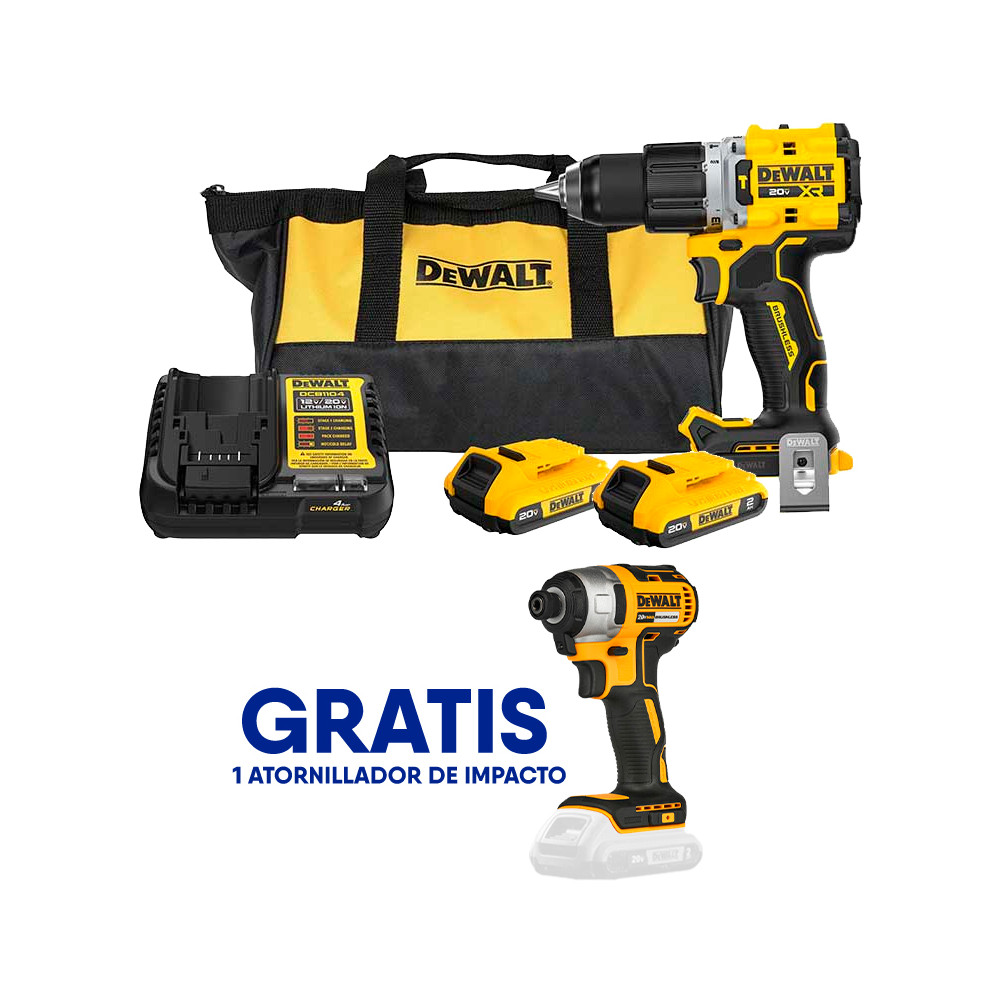[DCD806D2-7871B] - BARRENO/TALADRO PERCUTOR XR, 1/2 PULG, 20V. BRUSHLESS, SISTEMA ANTI-ROTACION. GRATIS ATORNILLADOR DCF7871B. DEWALT