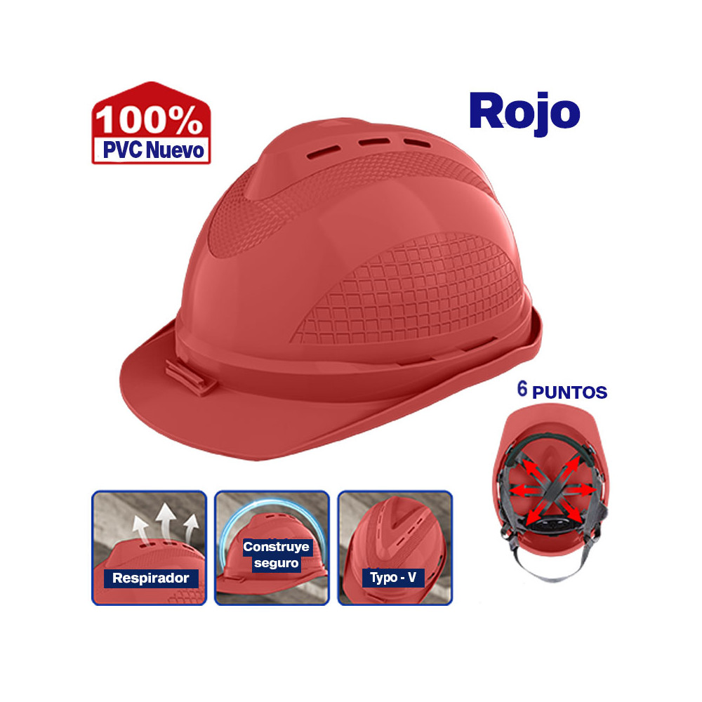 Su carcasa de polietileno 100 % nuevo ofrece alta resistencia a impactos, mientras que las ranuras de ventilación permiten una mejor circulación de aire, manteniendo la comodidad durante largas jornadas.
