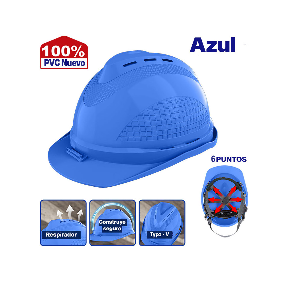 [ESHT0803] - CASCO DE SEGURIDAD COLOR AZUL, RANURAS DE VENTILACION, REFUERZO SUPERIOR EN V. EMTOP