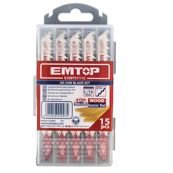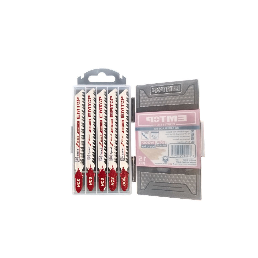 [EJSBT5111C] - SET DE 15 HOJAS DE SIERRA CALADORA TIPO T, SEGUETA CORTE EN MADERA 8 TPI X 4 PULGADAS DE LARGO. MARCA EMTOP