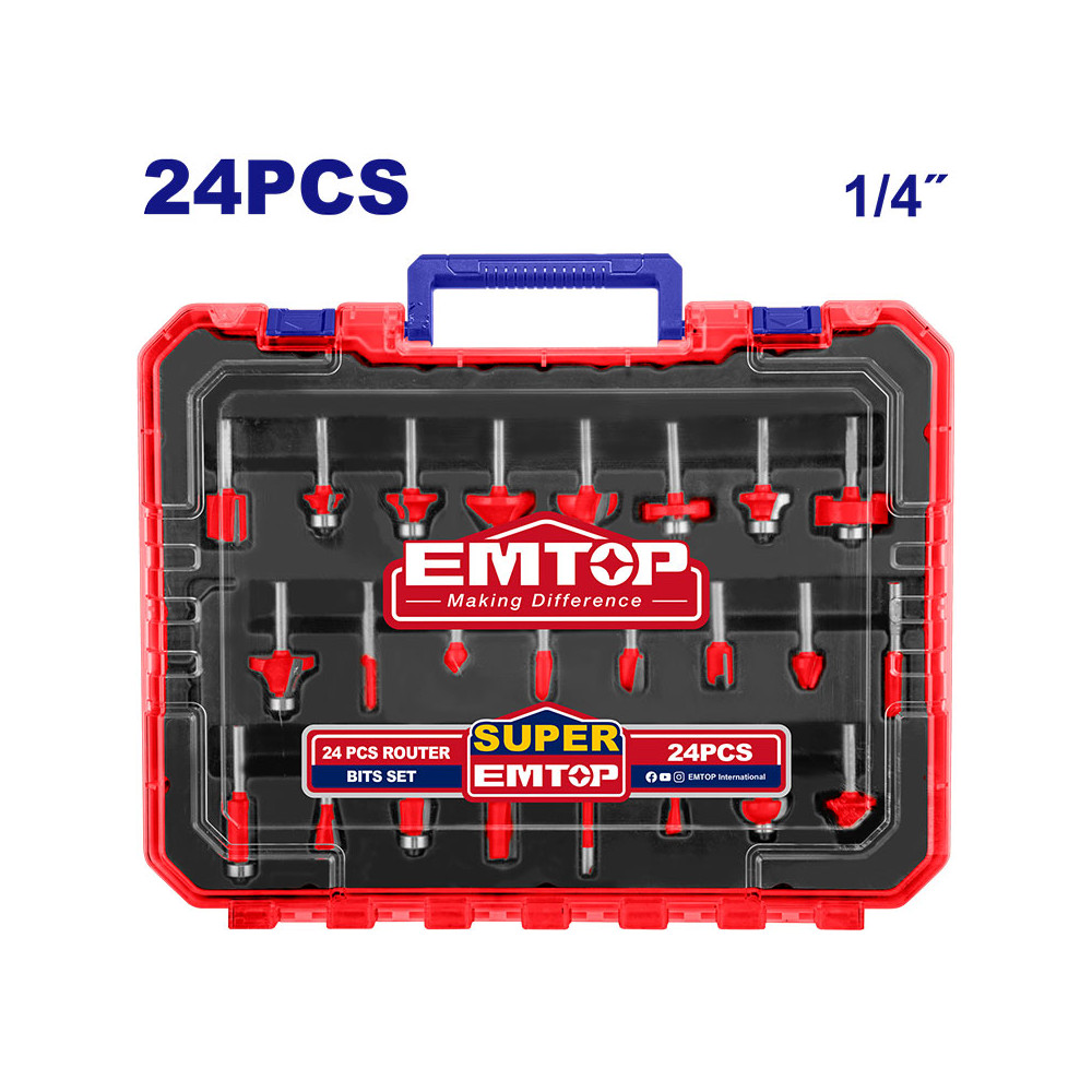 Acerca de este producto: - El juego de 24 cuchillas para router EMTOP ULRRT24142 está diseñado para ofrecer precisión y versatilidad en todo tipo de trabajos de carpintería y acabado en madera.