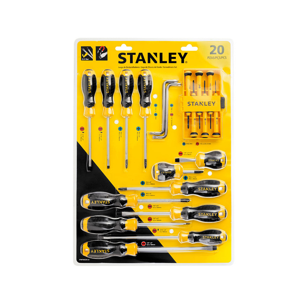 [STMT60220-LA] - JUEGO DE 20 DESTORNILLADORES, 3 PUNTA GABINETE, 4 ESTANDAR, 5 PHILLIPS, 6 DE PRESICION, 2 ACODADOS. MARCA STANLEY