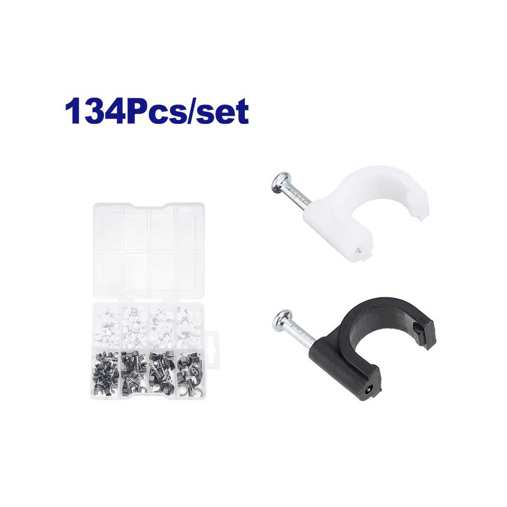 134 grapas de sujeción de cable en medidas de 5 mm, 6 mm, 8 mm y 10 mm.