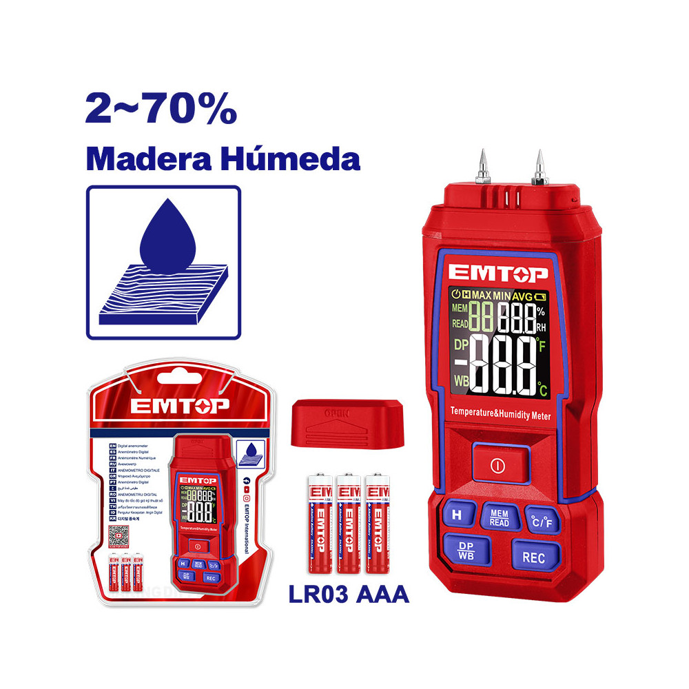 Acerca de este producto: - El medidor digital de humedad en madera EMTOP EMNN35031 ofrece una medición precisa y confiable del nivel de humedad en distintos tipos de materiales, ideal para carpinteros, constructores y técnicos que buscan resultados exactos.